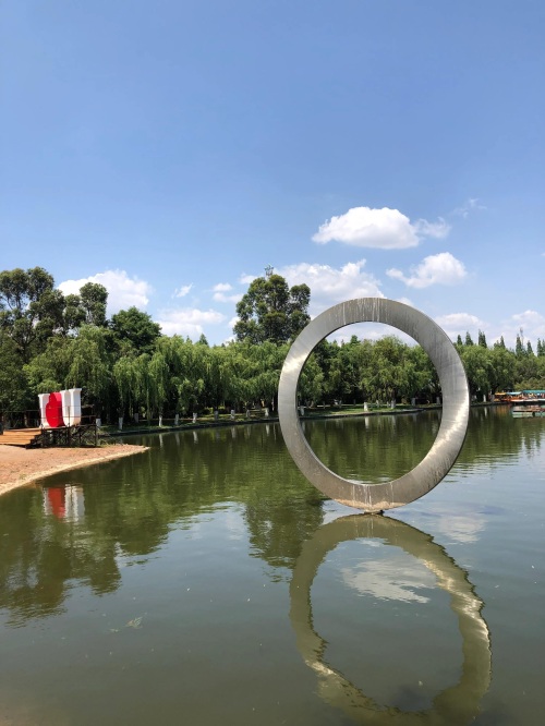 大观湖的“三潭印月”,月光映潭,影色分三。