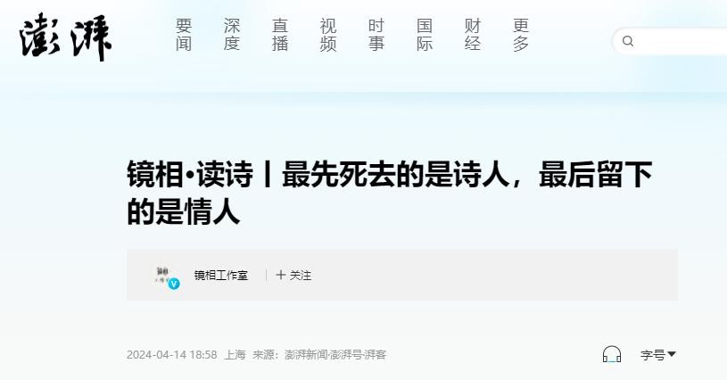镜相·读诗丨最先死去的是诗人,最后留下的是情人_澎湃号·湃客_澎湃新闻-The Paper
