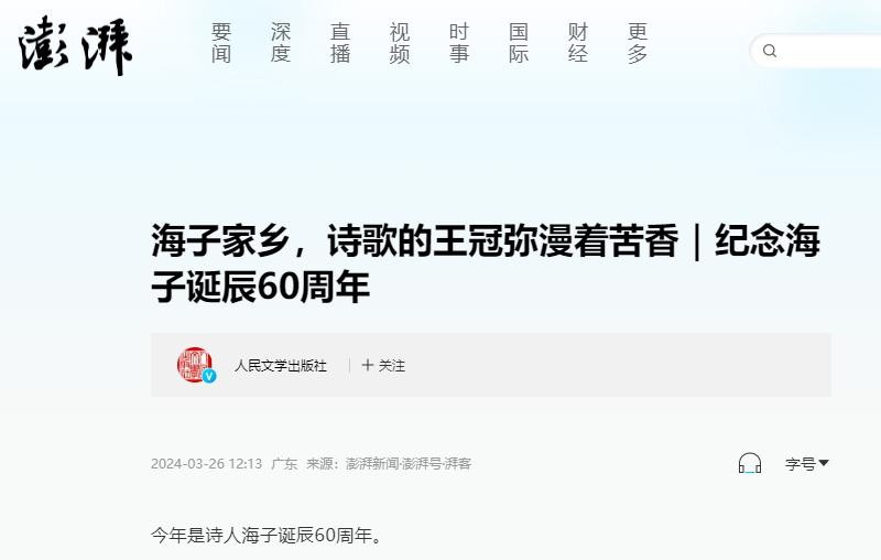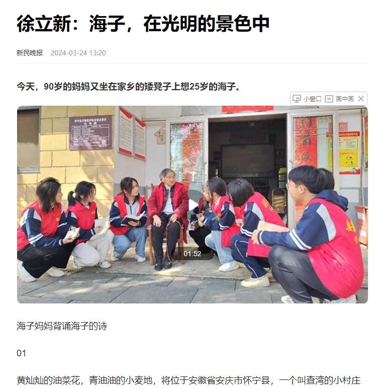 新民晚报2024年3月24日——徐立新:海子,在光明的景色中