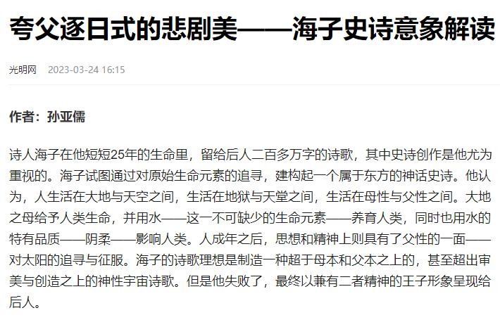 光明网2023年3月24日——夸父逐日式的悲剧美——海子史诗意象解读