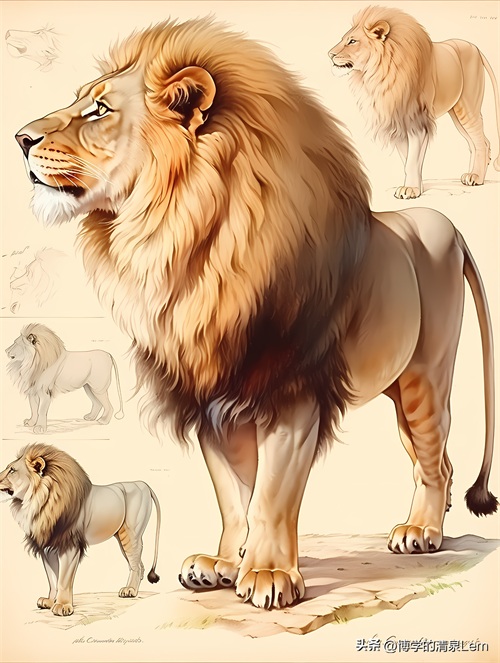 非洲狮是雄壮而威武的动物,雄狮通常比雌狮大,体重可达180至230公斤。它们具有浓密的金黄色或棕黄色被毛,雄狮还有鬃毛围绕着头部和颈部。非洲狮以其强大的力量、敏捷的身体和锋利的牙齿为特征,是顶级的食肉动物。