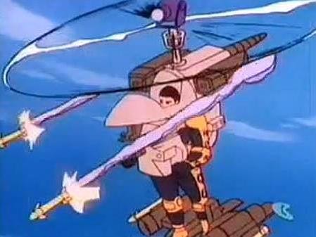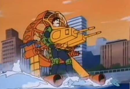 “大黄蜂号”是直升机型武器装备,带有直升机旋翼,肩膀和脚底各有两枚导弹,胸前拥有激光炮和冷冻炮,可谓是火力十足。