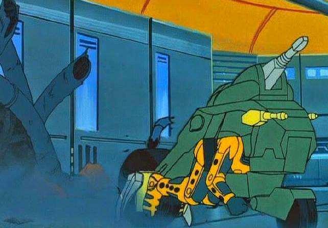 “弹弓号”只在动画的46集中出现过,是履带式武器系统。可以靠着履带行走,这个履带也可以旋转180°,从而飞檐走壁的行走。主体胸前有一门主炮,左右手臂各有两个机关枪以及四个小型火箭炮。