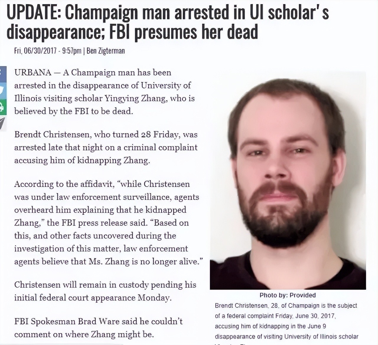 在大学任教的克里斯滕森承认,是自己绑架J污并杀害了章莹颖。