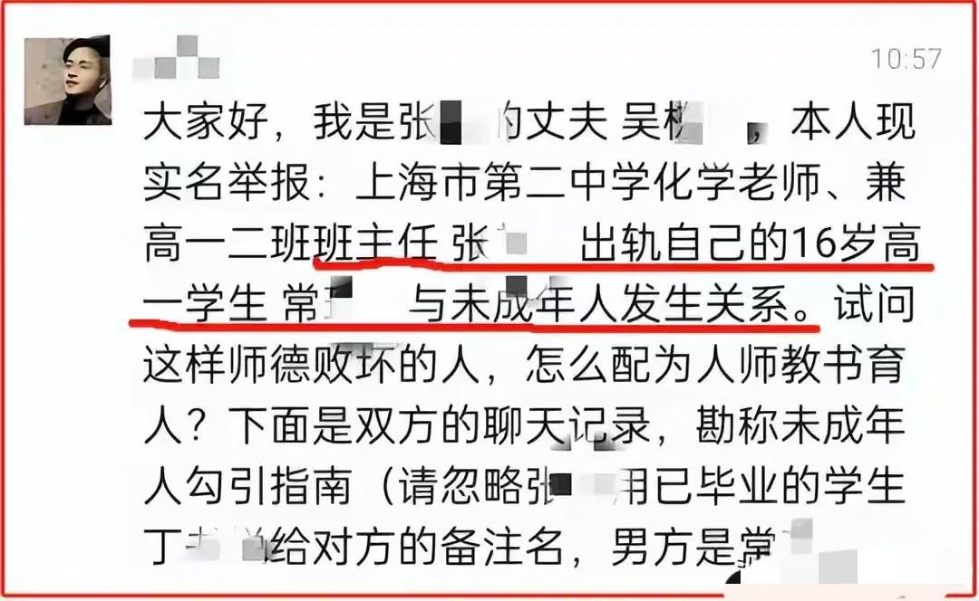 闹大了!上海一女老师被丈夫举报出轨16岁男学生,聊天记录曝光