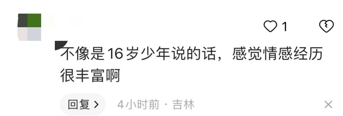 不像是16岁少年说的话,感觉情感经历很丰富啊!