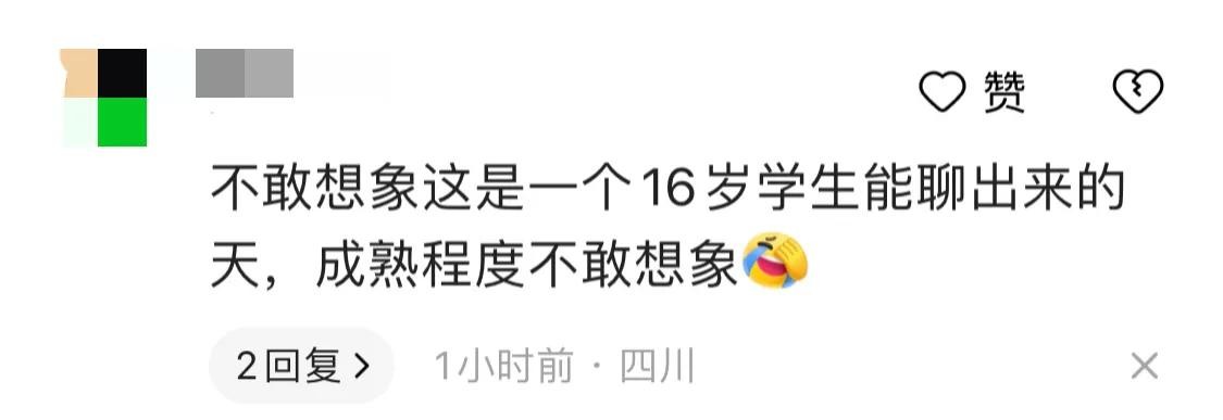 不敢想象这是一个16岁学生能聊出来的天,成熟程度不敢想象。