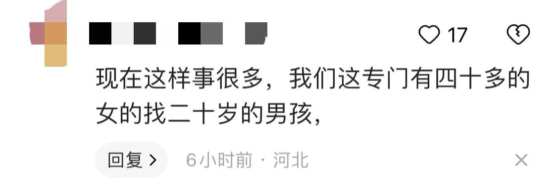 现在这样事很多,我们这专门有四十多的女的找二十岁的男孩。