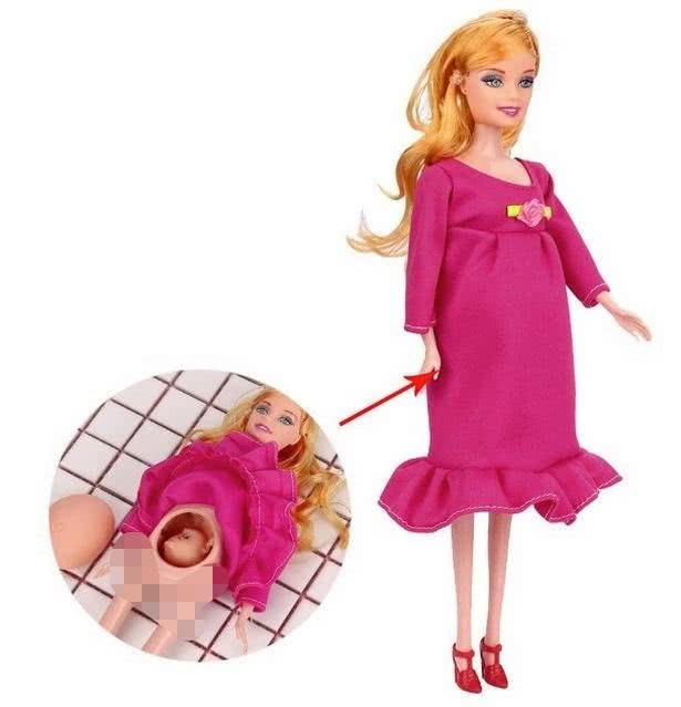 这款“怀孕”的芭比娃娃有不同的样貌,不过它们的肚子里都有一个可拆卸的“婴儿”,售价为3.89英镑(约合人民币30元)。