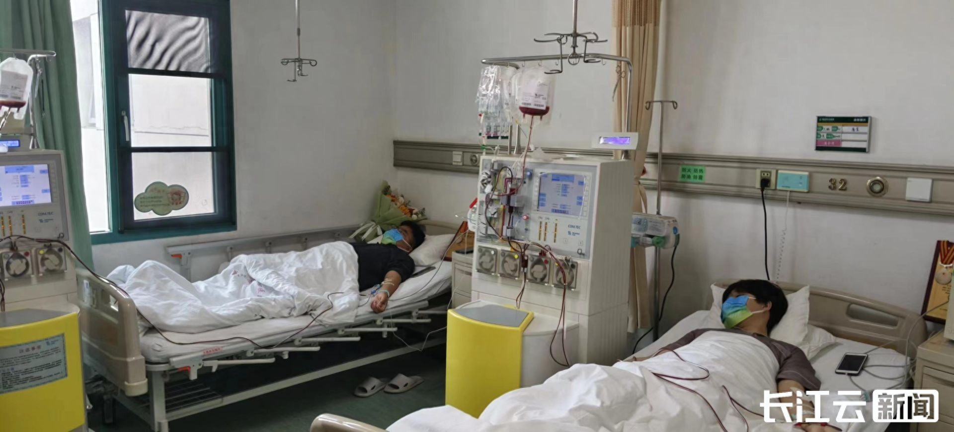 3月11日上午8时许,在武汉市中心医院血液治疗中心,来自武汉的晓辉(化名)、王翳(化名)在医师的护理下开始采集造血干细胞,为两位素未谋面的血液病患者传递生命希望。