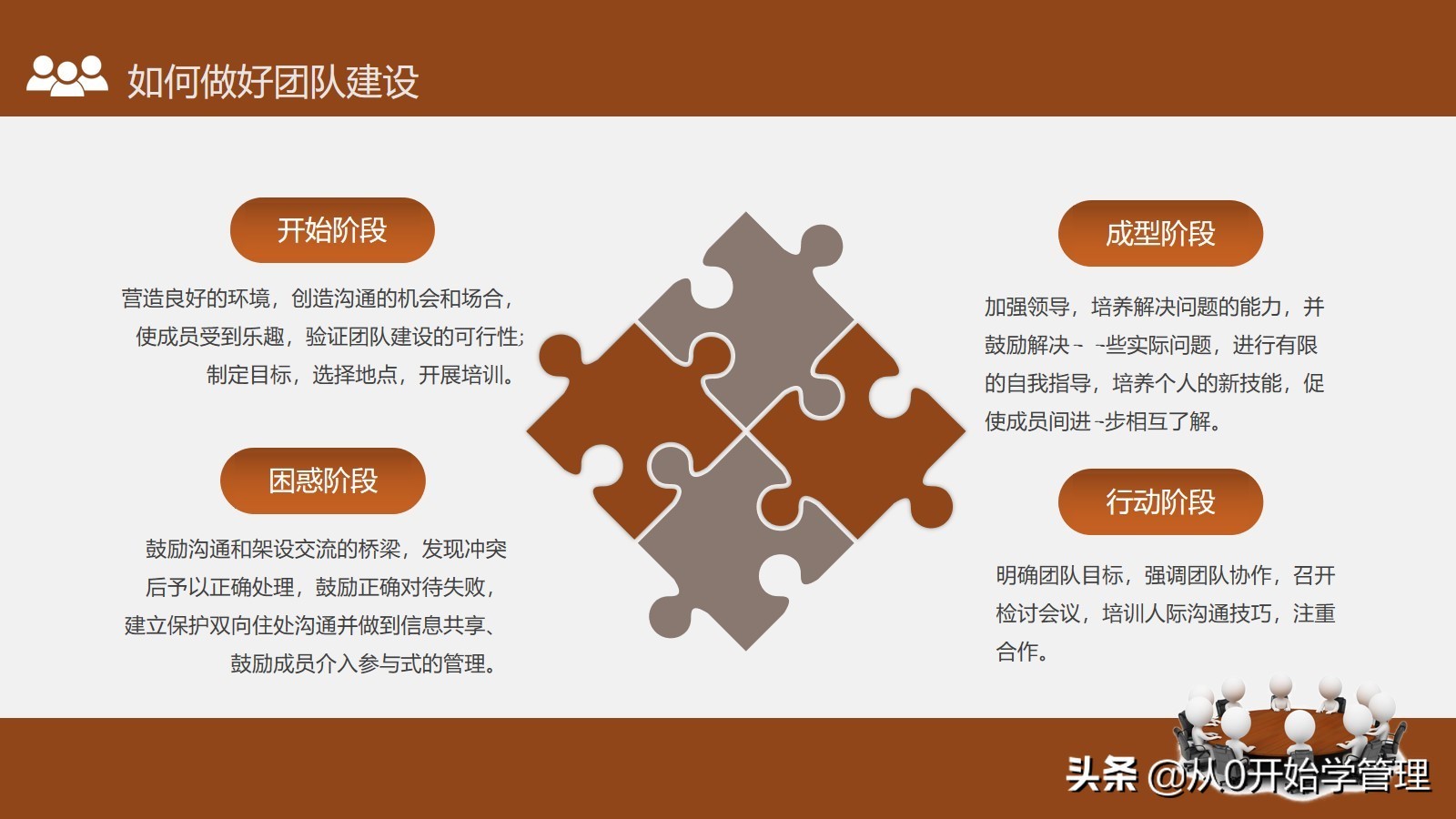 团队建设是企业在管理中有计划、有目的、有步骤地对其成员进行训练、总结、提高的活动。