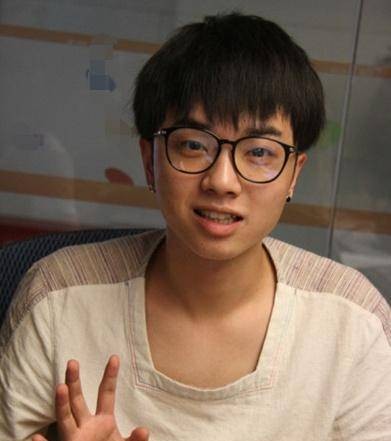 戴着一个眼镜留着一头蘑菇头看起来十分的青涩。