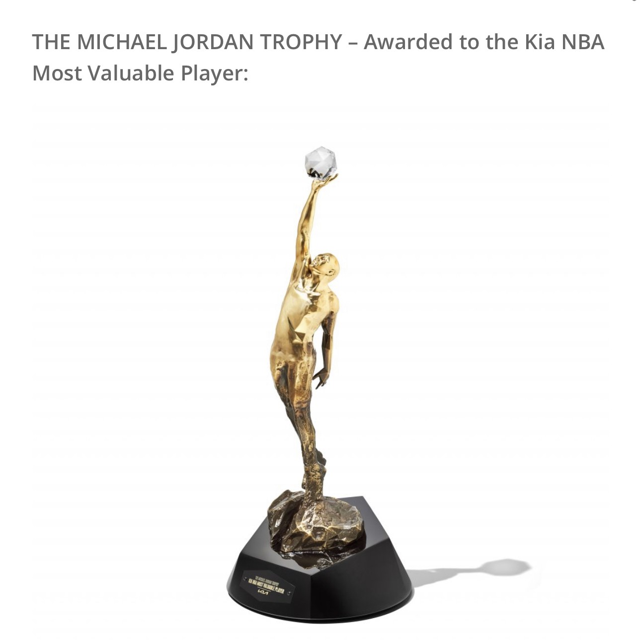 迈克尔·乔丹奖杯,也是最新的常规赛MVP奖杯