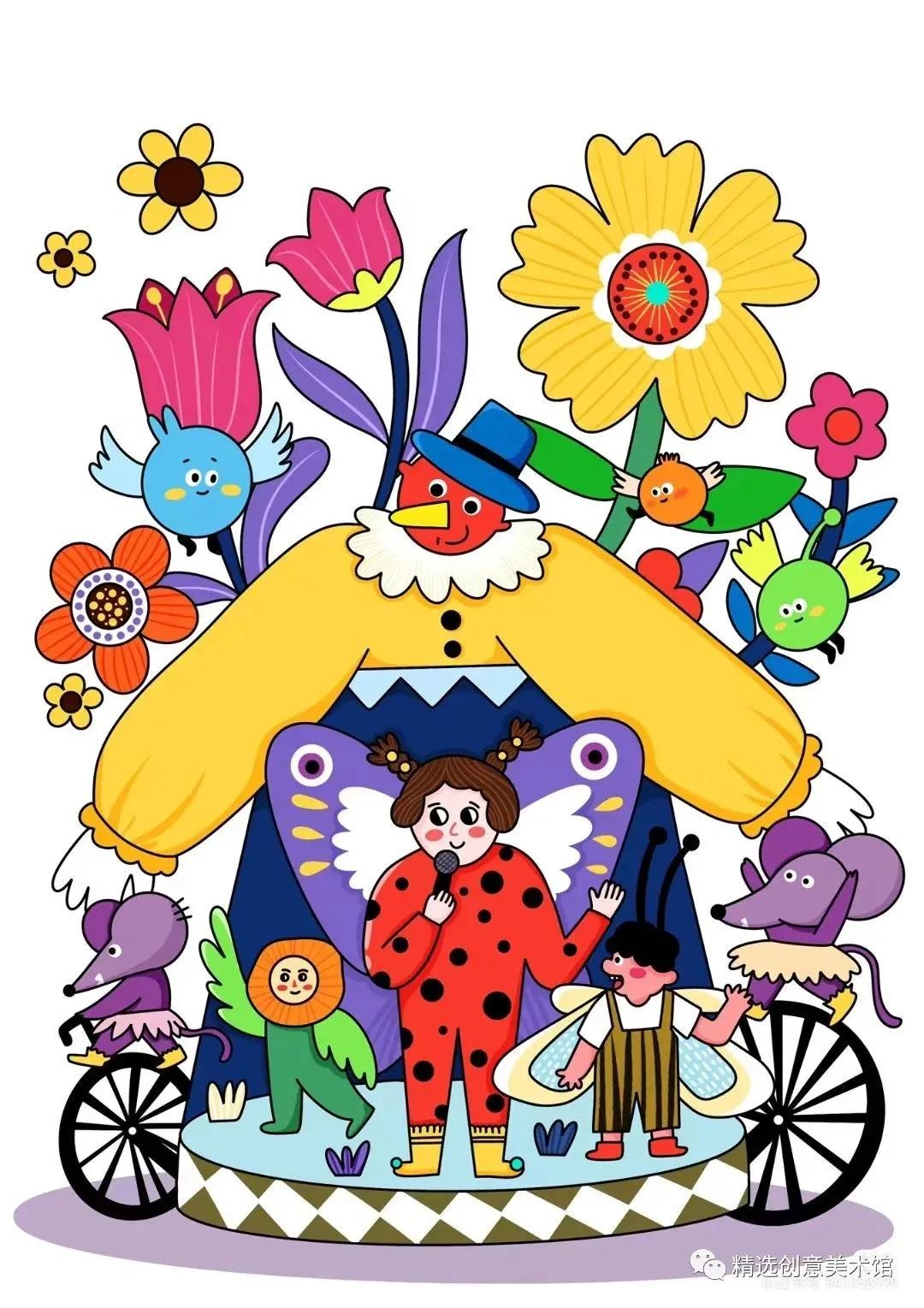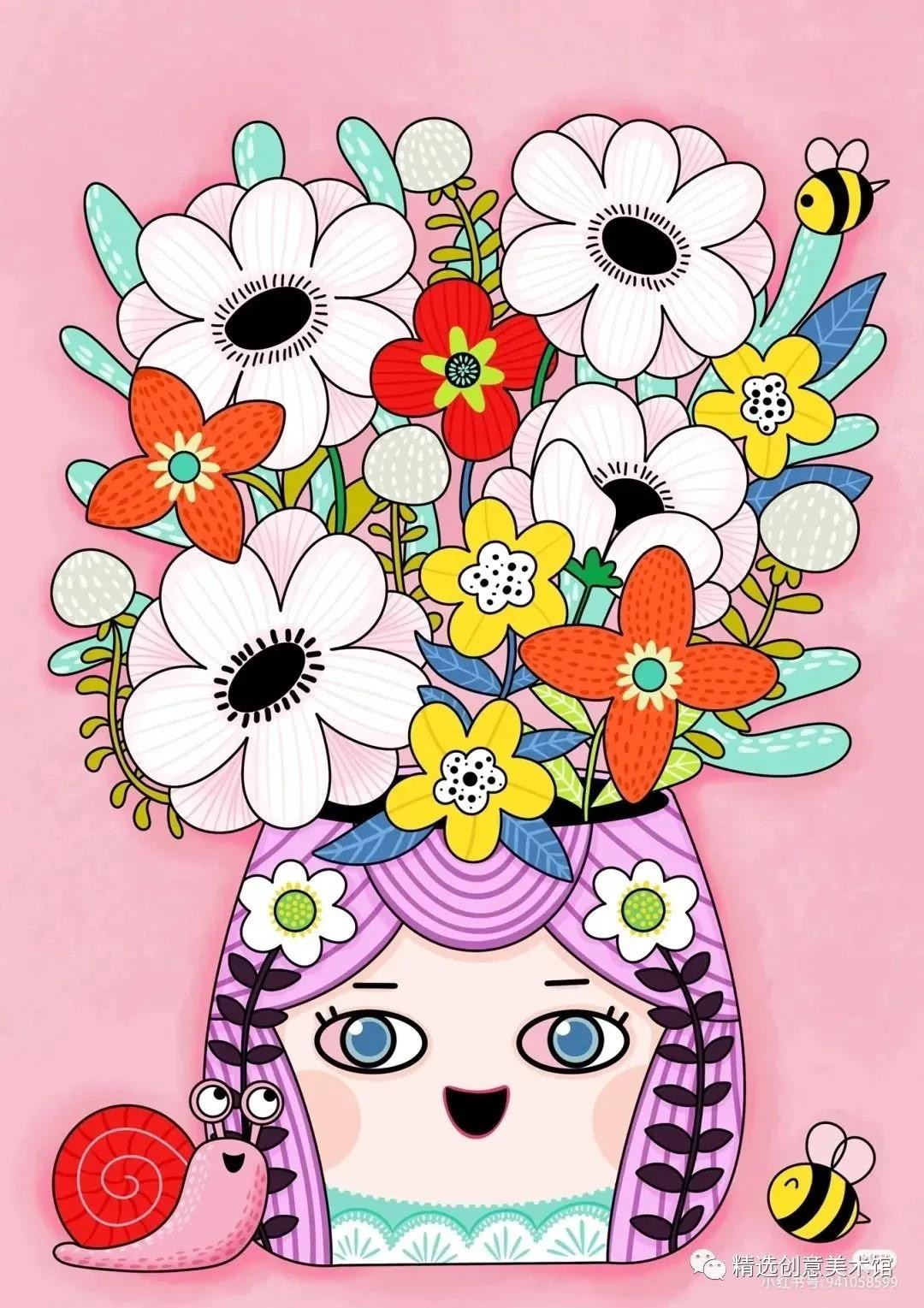 精选~20张卡通简笔画,装饰创意画,配色简直美爆了!