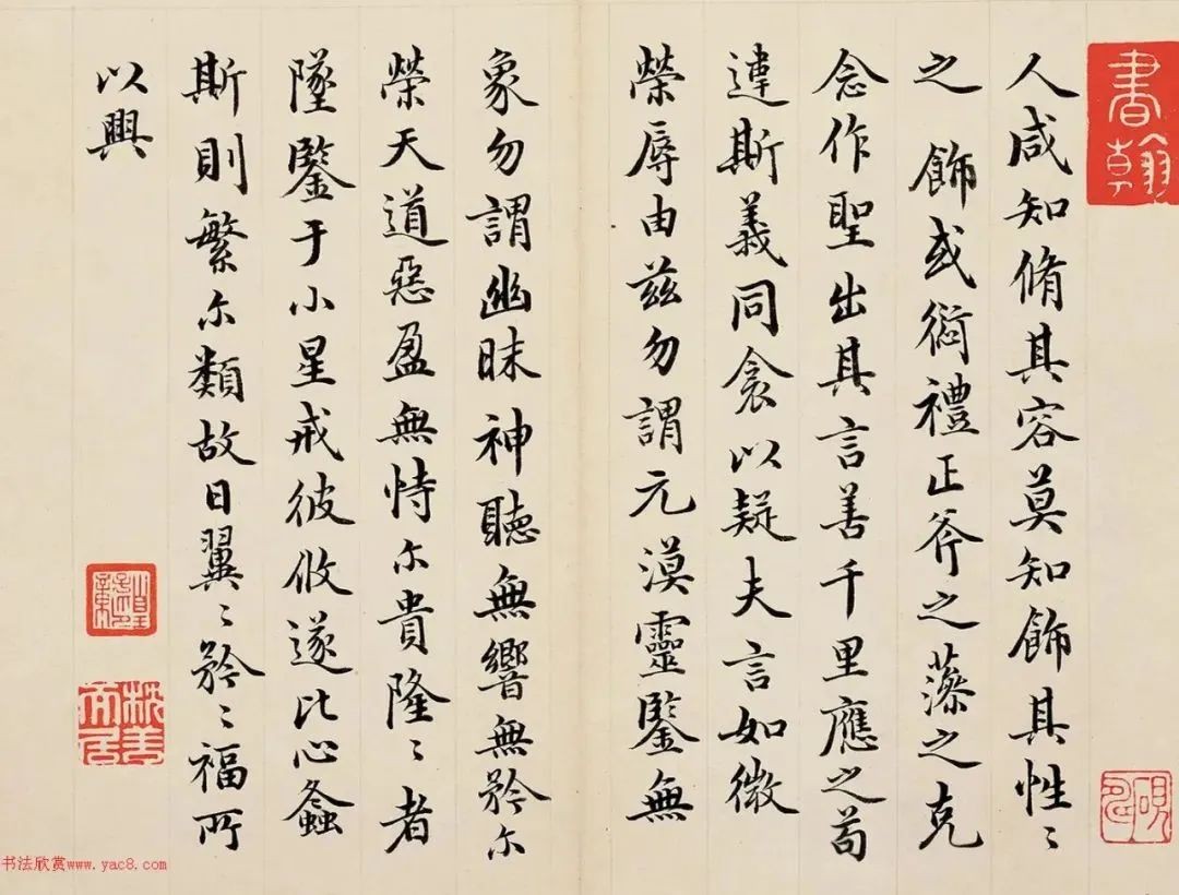 此小楷风姿骨力兼备,神完气足,展现出永瑆书法的高超技艺。每个字都力透纸背,既有力度又不失柔美。