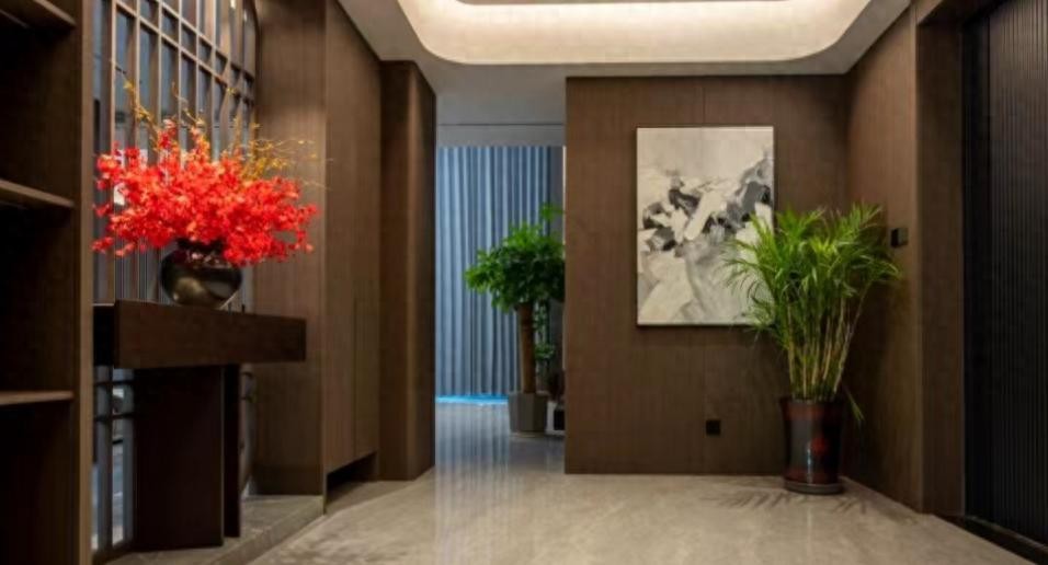 推门而入,一股中国风迎面而来,宛如进入一户中式风的雅宅。当然这是屋主的小心思,用中式元素来彰显空间的优雅与大气。不管是镂空格栅的设计,还是迎面的一抹中国红,既营造了沉稳的格调,又承载着吉祥如意的美好寓意,给人以惊艳的感觉。