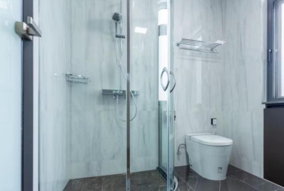 卫浴间设计采用白灰撞色处理,空间划分也更合理,做到有条不紊。偏咖的简一保加利亚灰精致整洁,而活泼大气的简一希腊伯爵白则给静谧的空间带来了活力,动静结合,在保证实用性的同时,也契合了卫浴间干净利落的基调。