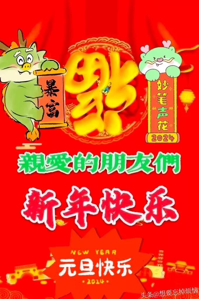 咚咚咚,2024到啦,请收下我真诚的祝福吧!2024龙年大吉,愿:“四面八方财运到家门;四季平安长健康;四喜临门好事多有发生。”亲爱的朋友,元旦快乐!
