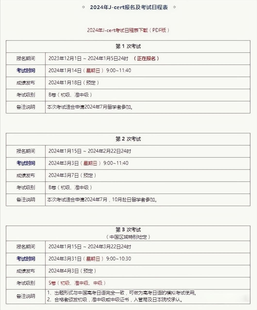 为了帮助学习日语的同学们提前准备,特地梳理了2024年重要日语考试的报名时间和注意事项!这份考试安排都将给你提供重要的参考信息~建议同学们收藏保存,千万不要错过了报名时间哦。