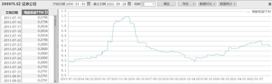 当然,不是所有的宽基指数和非周期类行业指数的每股收益都整体向上。