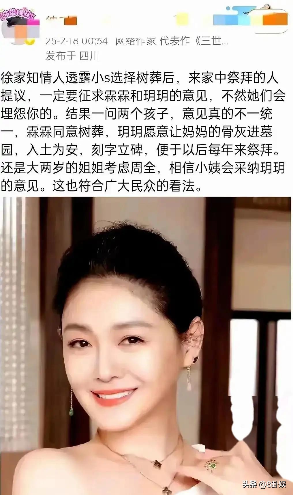 但是如今大S已经去世多日,决定究竟选择怎样的下葬方式确实刻不容缓。