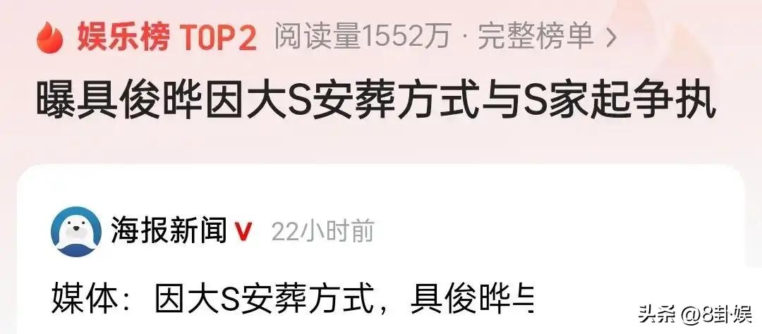 而具俊晔因为安葬方式与大S家里产生分歧这件事很快也引起了不少网友的关注。