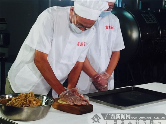 “黄记”月饼长子传承人黄庆荣亲手制作月饼。广西新闻网记者 秦丽君 摄