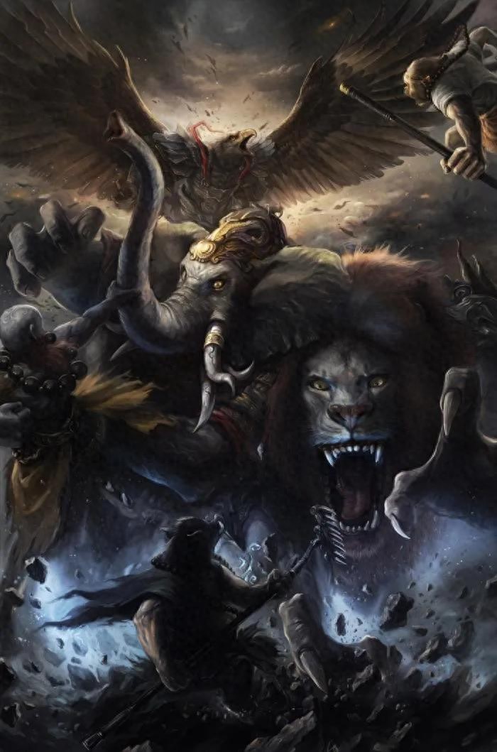 另外还有人说当时的齐天大圣孙悟空甚至被吓到腿软,试想一下,孙悟空是何等的存在,也被吓得腿软,这是从来都没有过的。不过这个描述显然是有点夸张的,要说猪八戒腿软那肯定是真的。但是不得不承认这一次孙悟空是真的遇到对手了,最后甚至不得不请如来佛出手,其中的金鹏大翅鸟还和灵山的众多罗汉争斗并且不落下风。