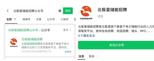 打开微信搜一搜,搜索“北极星储能招聘”,查看更多企业招聘和新闻