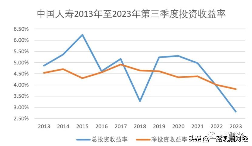今年前三季度,中国人寿总投资收益率为 2.81%,同比下滑1.22个百分点;净投资收益率为3.81%,同比下滑0.31个百分点。