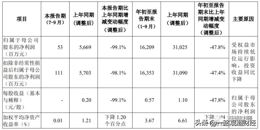 对此,中国人寿表示,净利润的下滑主要受到权益市场持续低迷的影响,导致投资收益同比下降。