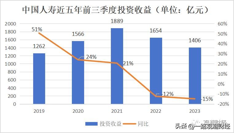 旧会计准则下,今年前9月中国人寿投资收益约为1406亿元,较去年同期同比下滑15%,在近5年中下滑速度最快。