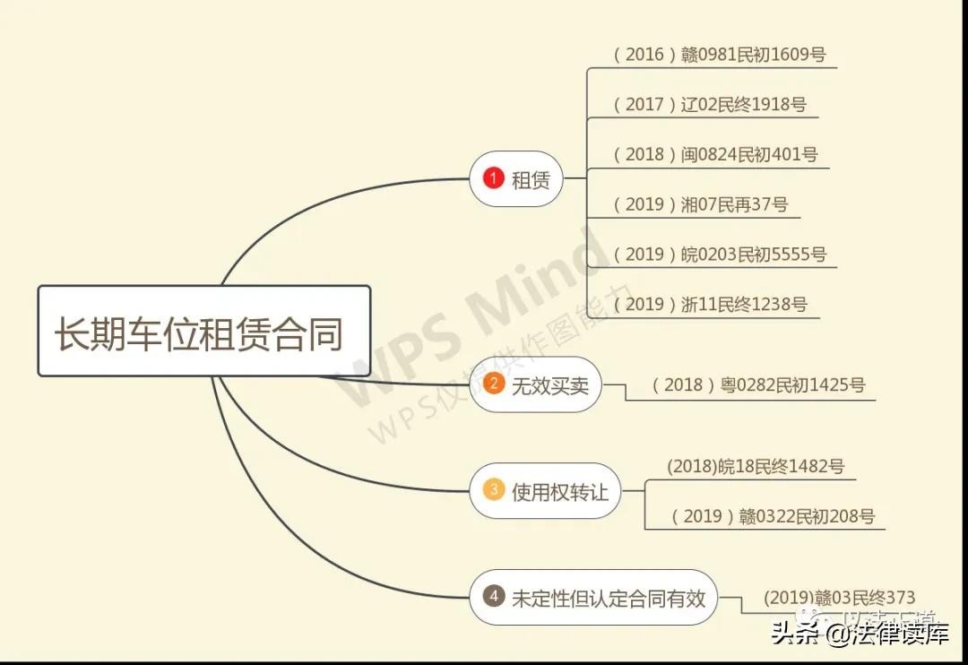 对于《车位租赁合同》,虽然多数裁判将其性质认定为“租赁”,但还是有个别法院判决将其性质认定为“使用权转让”(关于该类合同的裁判定性,见下图)。