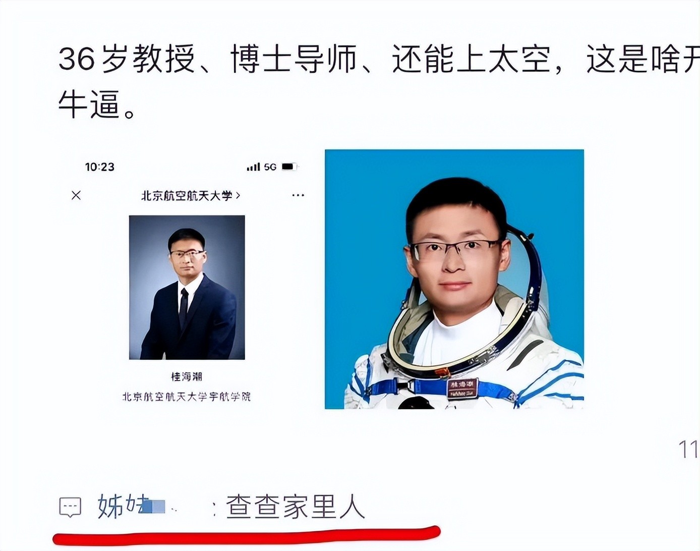 竟然有人质疑航天员桂海潮的身份,甚至还扬言“查查他的家里人”。