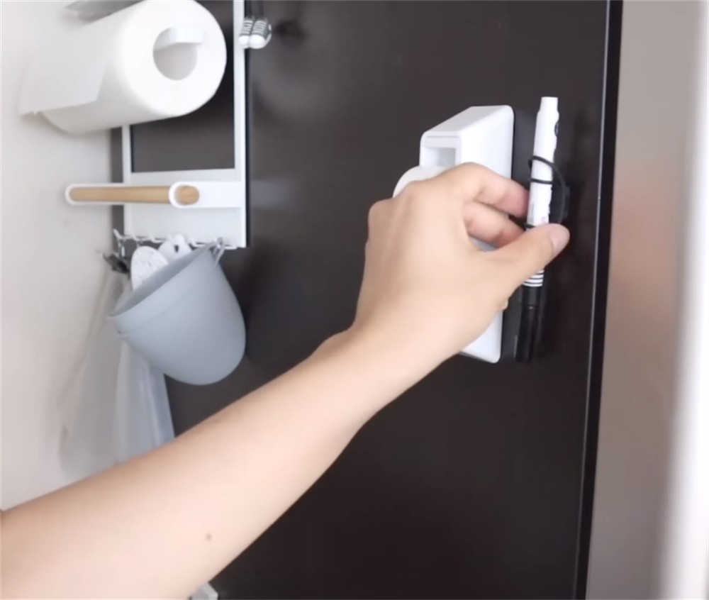 此外,还可以用它绑上水笔,吸附在冰箱上或留言板上,可以当作一个家庭备忘录的收纳伴侣,想想也挺好用。