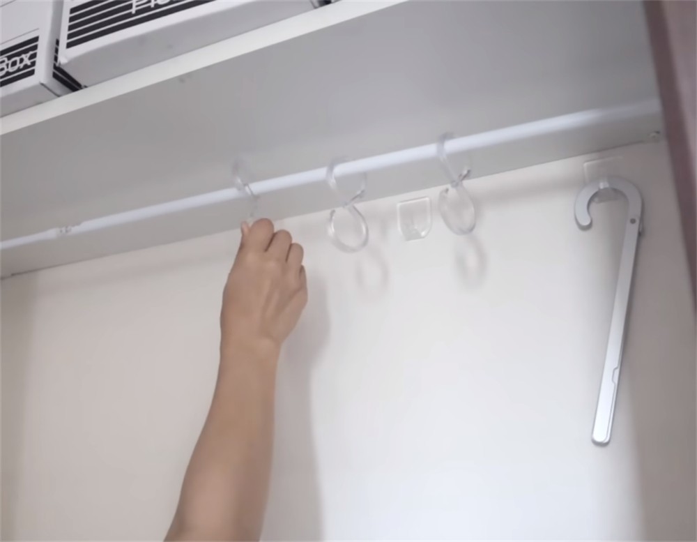 有些推拉门的框架上,其实也有类似的门框凸起,这时候将挂钩安装在门框上方的吊轨凸起处,可以增加挂置收纳空间。