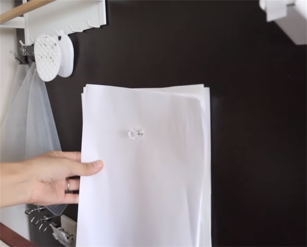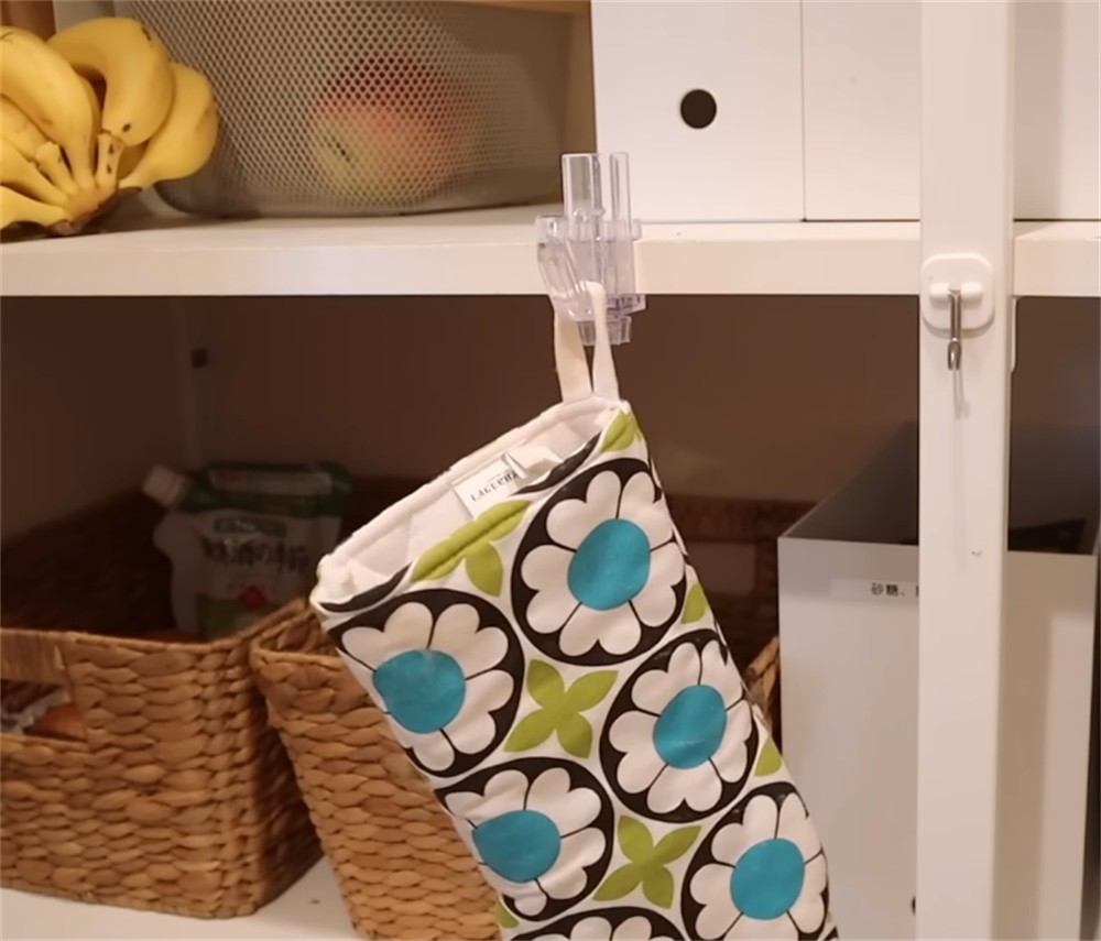 当然,也可以用在厨房、卫生间里,挂隔热手套或者是胶皮手套,小伙伴们也可以发挥自己的想象力,看看家里有什么凸起的边框,把它安装好以后,无形中多了一处收纳区域。