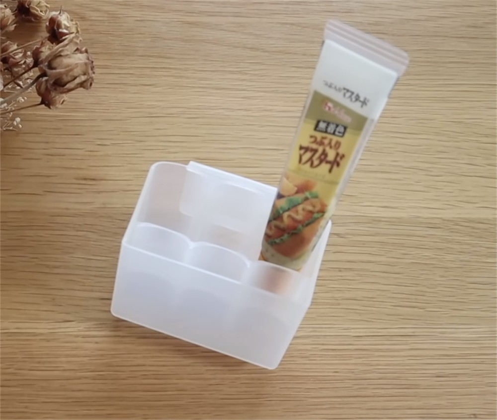 最后,再给大家分享个这种管状的调料收纳盒吧,它主要是用来收纳一些包括芥末、番茄酱那种跟牙膏包装差不多的管状调味品,放在冰箱和橱柜抽屉里都不错。