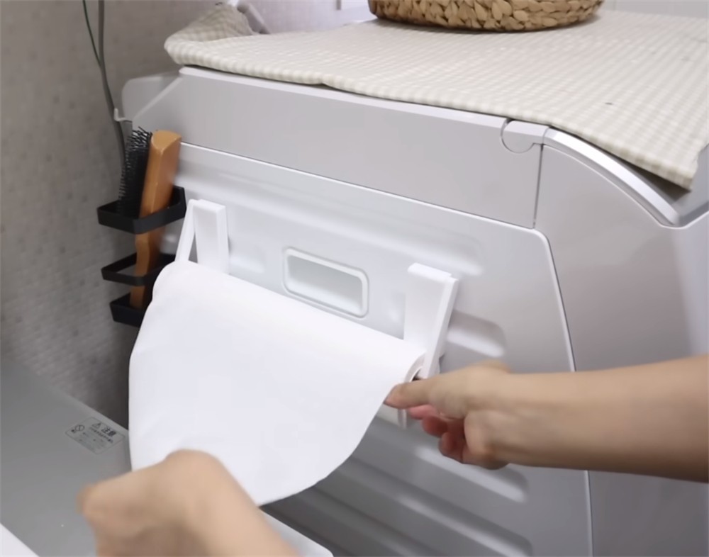我发现,这小东西吸在洗衣机侧边,用来挂一些清洁纸巾真的超合适,固定得还算稳当,轻易不会扯掉。