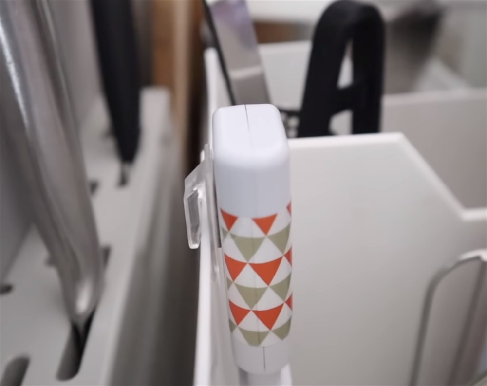 使用起来也很简单,因为它本身自带一个旋拧式的固定支架,想要安装时,也不用胶水、螺丝等物,使用起来非常灵活,不用的时候,也可以把挂钩摘下来放到抽屉里收纳即可。