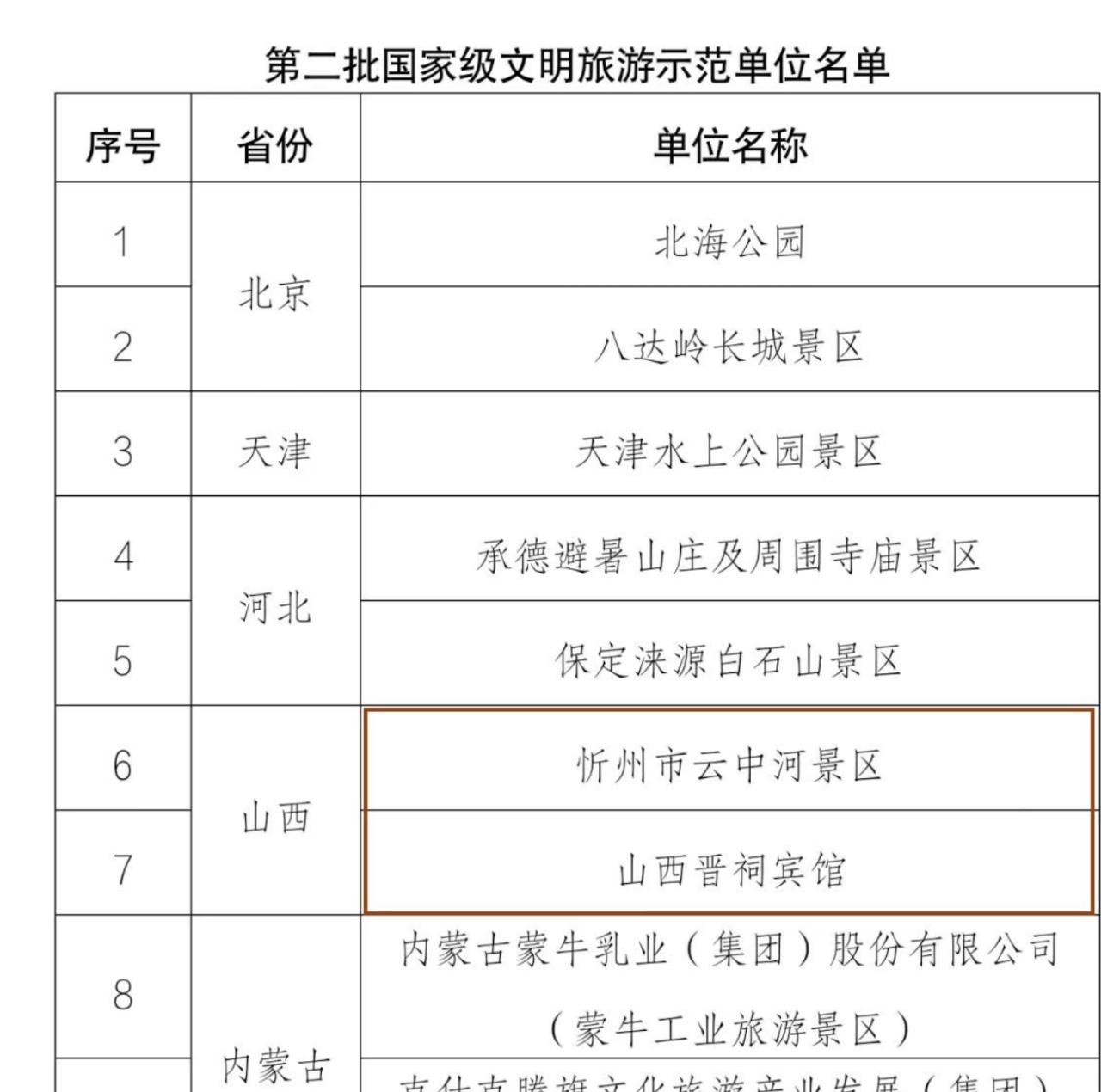 近日,文化和旅游部公布66家单位为第二批国家级文明旅游示范单位(包括2021年因疫情原因未开展实地评定的9家单位和2022年申报的57家单位),我省有两家单位入选,分别是山西晋祠宾馆和忻州云中河景区。