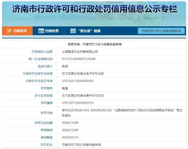 2025刀郎演唱会济南站通过审批!2月14日—15日开唱