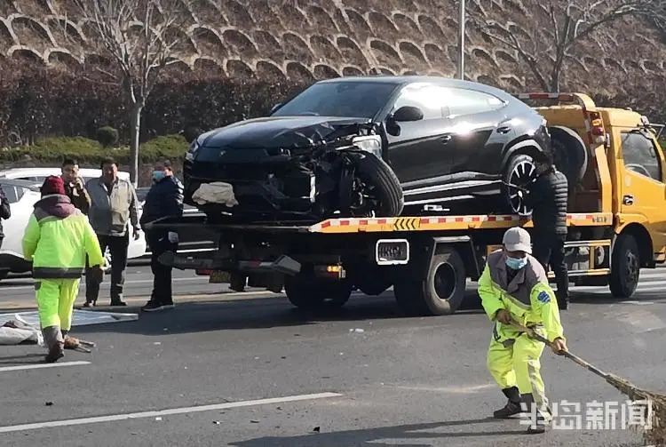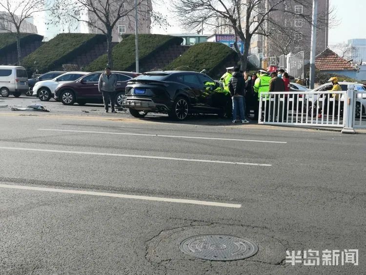 突发!兰博基尼撞飞护栏,青岛福州北路出现拥堵