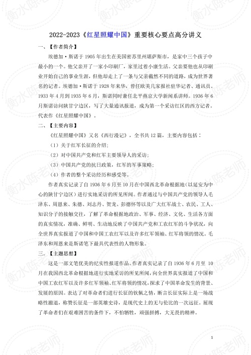 全面解读《红星照耀中国》,今天老师把最全面的内容全部分享给大家,这些内容也是考试中,试卷里面必出的内容,赶紧为考生打印出来。