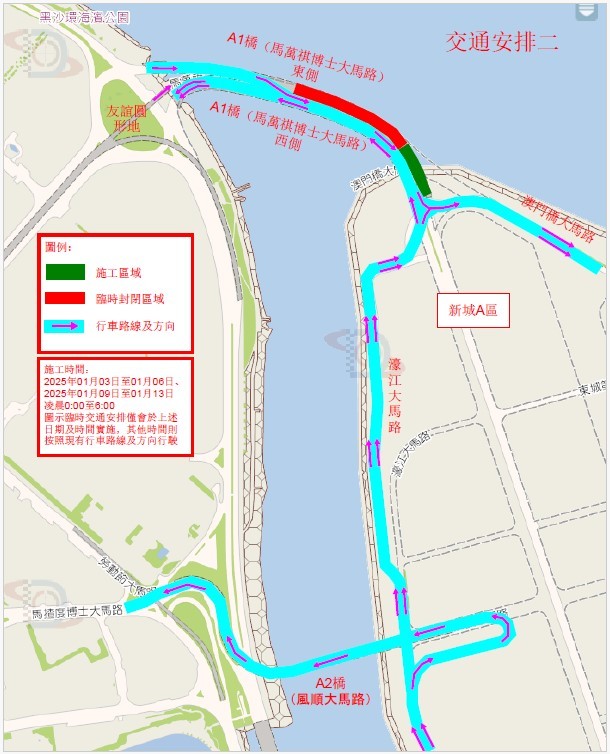 跨A1桥(马万祺博士大马路)进行钢箱梁吊装之临时交通安排