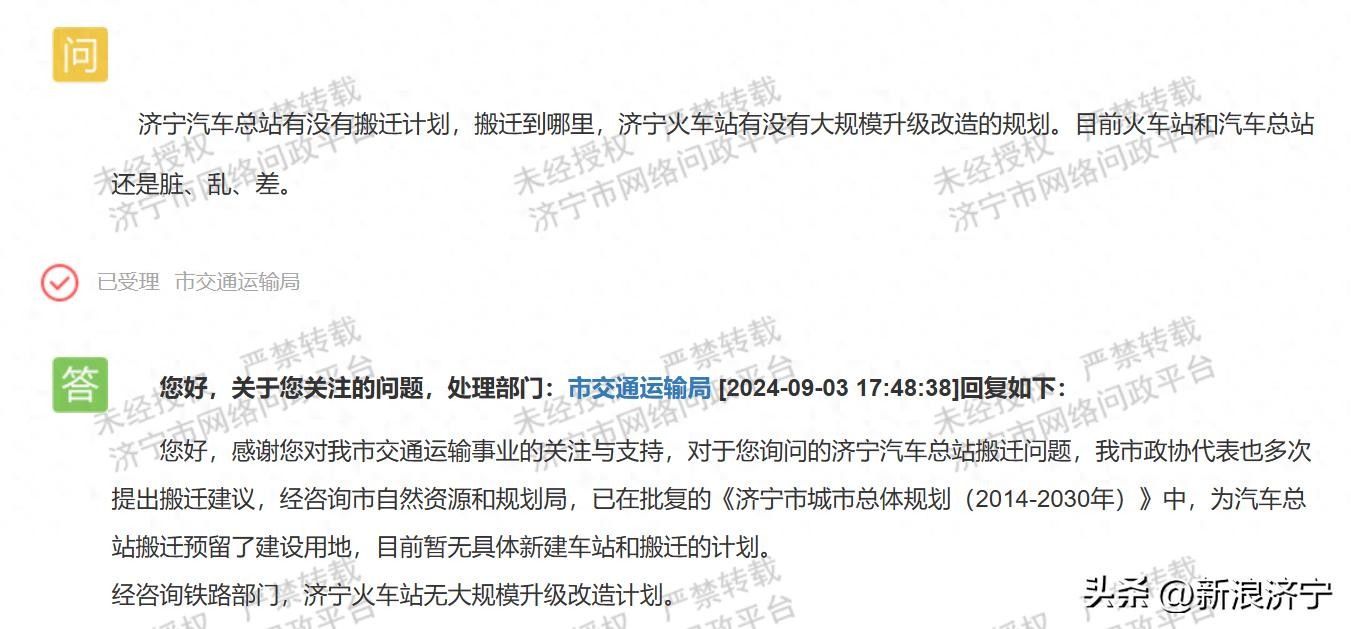 最新回复!事关济宁汽车总站搬迁和火车站升级改造相关问题