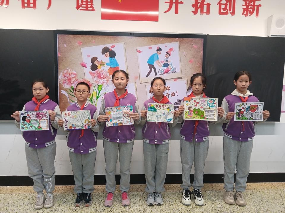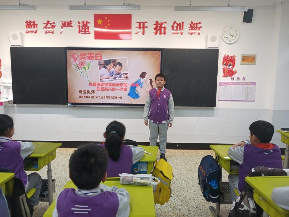 在主题活动中,老师为同学们布置了几项任务,大家可以选择其中几项参与,并大声说出对父母的爱。有的学生制作了主题手抄报、卡片等,送给父母表达感恩;也有学生选择帮助父母做家务活等方式,身体力行表达对父母的感谢。