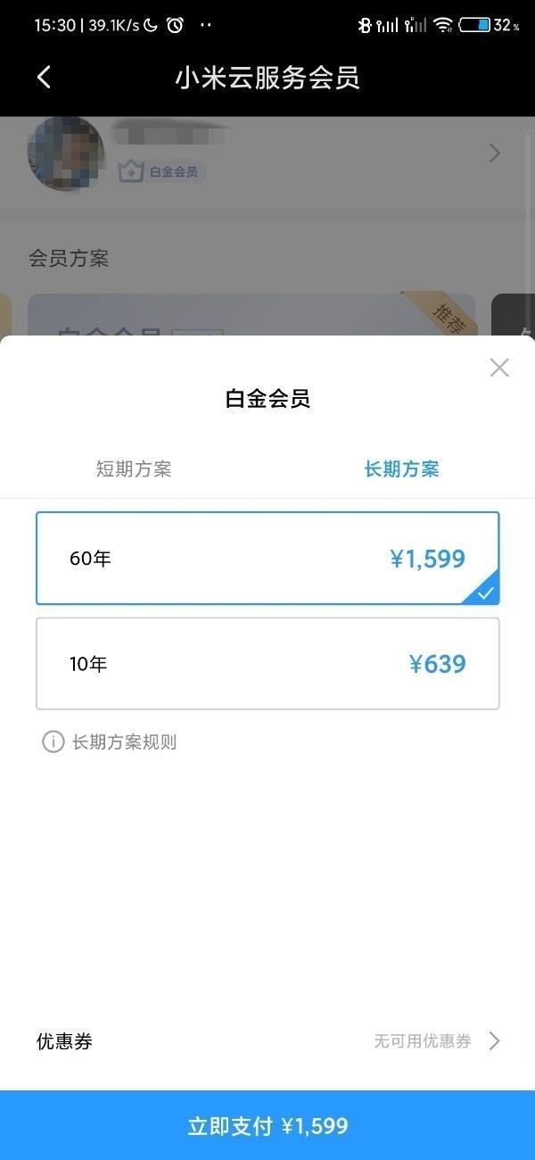 日前,有眼见的网友发现,小米云服务会员上新了会员方案,并且这一服务可持续长达 60 年!