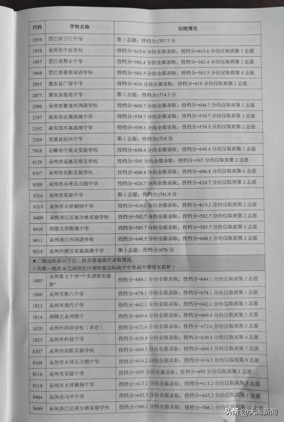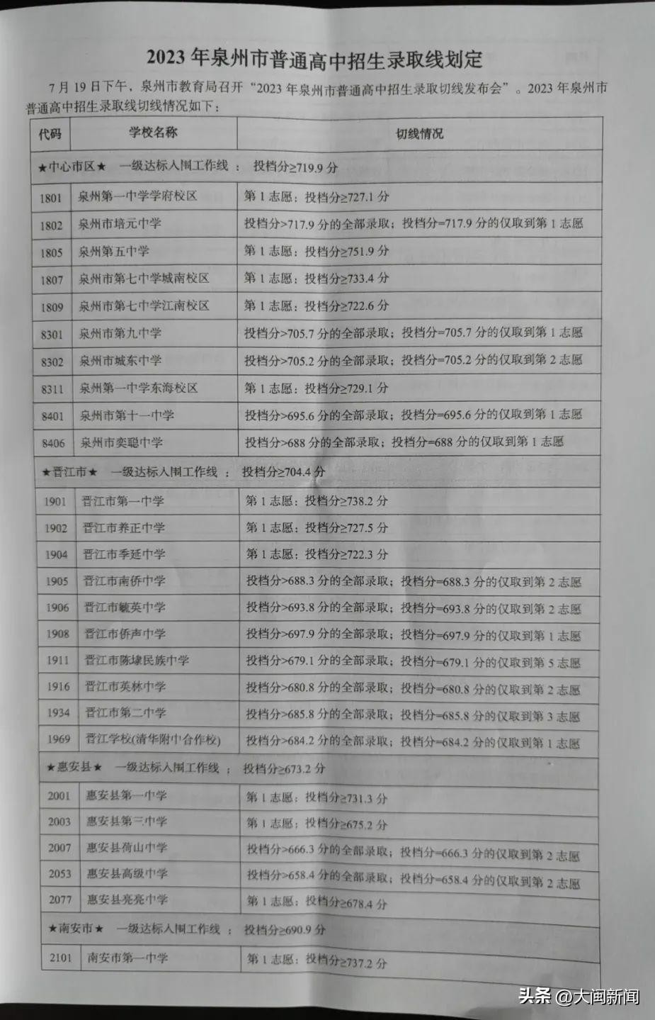 泉州五中统招751.9分!2023年泉州市普通高中招生录取切线公布!