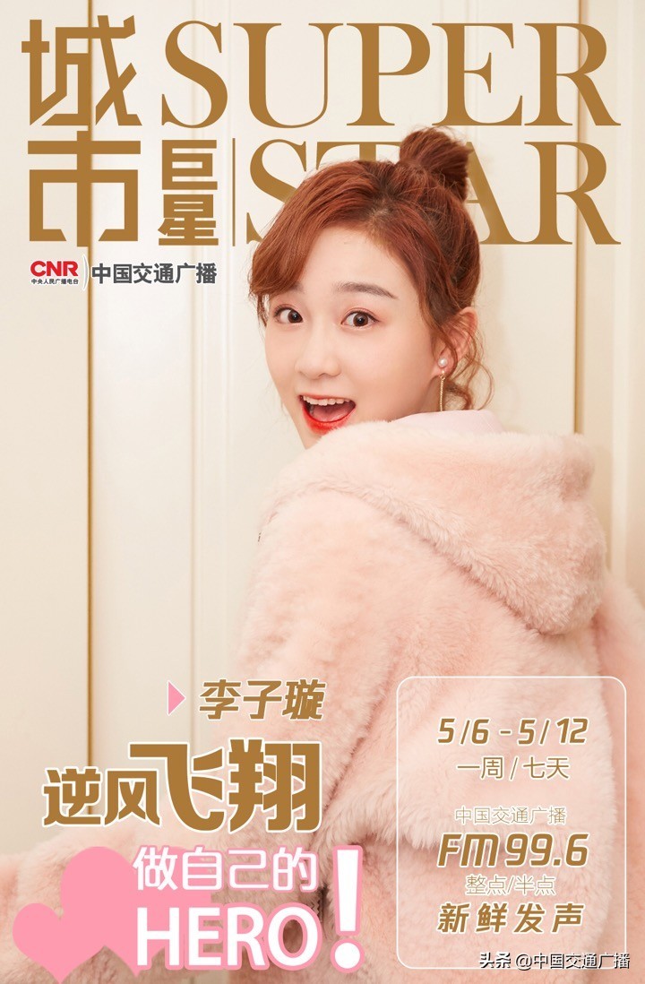 5/6-5/12 本周城市巨星Superstar李子璇在中国交通广播FM99.6整点/半点新鲜发声啦!她是《创造101》里的小甜豆,是跟着风勇敢去冲的逆风少女,是坚持梦想拥抱彩虹的HERO。